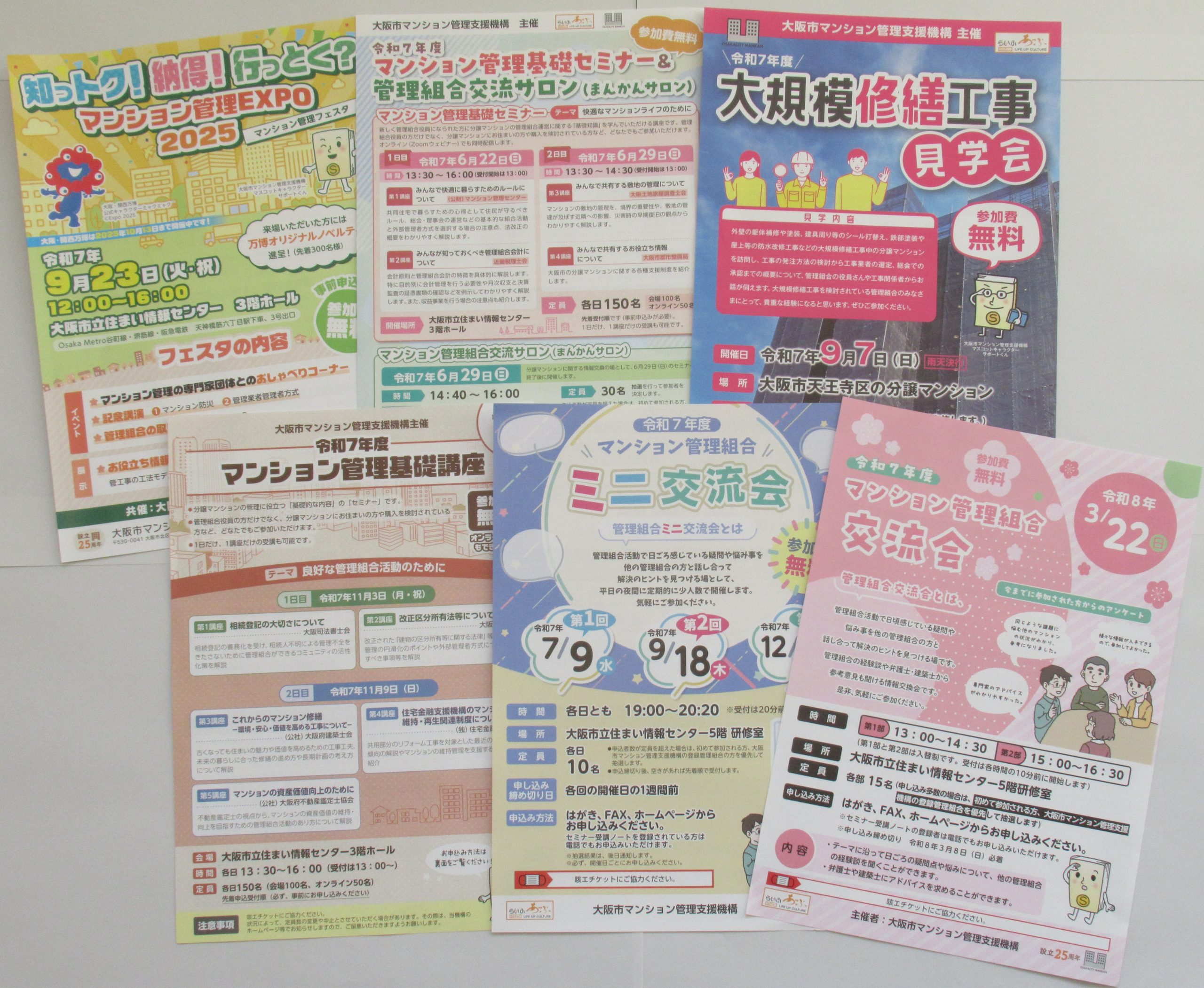 平成12年6月、公共団体、法律や建築などの専門家団体、及びマンションに関連する民間事業者団体が連携・協力して「大阪市マンション管理支援機構」を設立し、セミナーの開催や情報誌の発行等の活動を通じて、管理組合及び市民の皆様に分譲マンションの適切な維持管理のための情報提供や普及啓発事業を行っています。